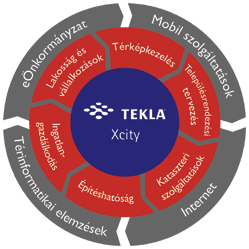 A Tekla Xcity az önkormányzatok településüzemeltetési feladatainak teljes körét támogató, gyors, rugalmas integrált információs rendszere. A napi munkát egységes adatbázisra épülő, széles körű alkalamzások támogatják: kataszteri szolgáltatások, térképkezelés, -előállítás, lakossági adatkezelés, építéshatósági feladatok, közterület üzemeltetés, épület és ingatlannyilvántartás, rendezési tervek, településtervezés, térinformatikai elemzések és adatkezelés, stb. A teljes körű intézményi és internetfelhasználói információszolgáltatáshoz a TeklaXcity központi adatbázisa és a kiválóan teljesítő webes funkciói biztosítanak szilárd alapokat.